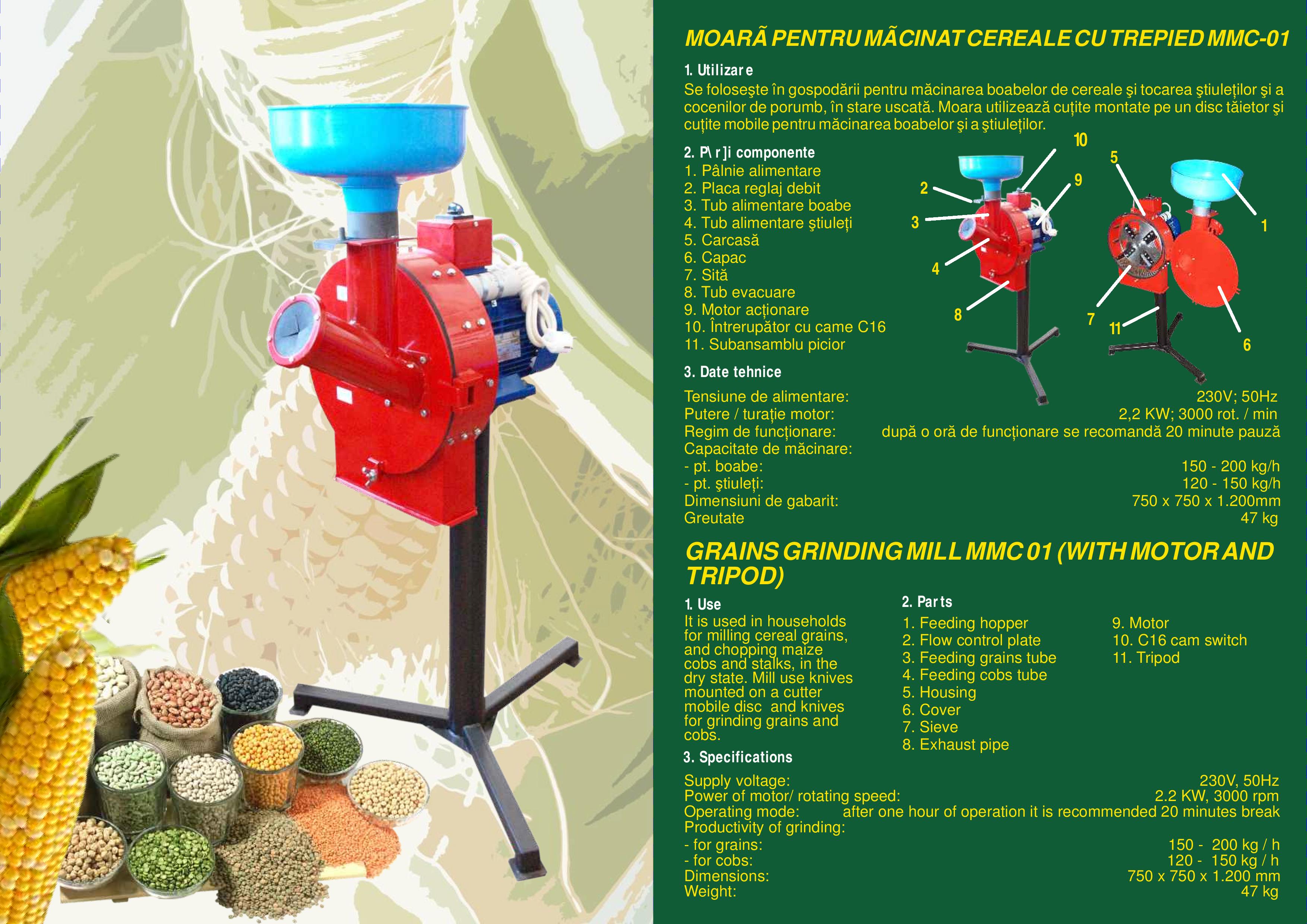 SKU: MOARA DE MACINAT CEREALE CU TREPIED MMC-01